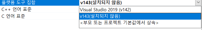 집에서 사용하는 2019버전을 2022로 업그레이드한다면 해결되는 오류이다. 그러나 최적화와 안정화가 되어 있는 2019의 사용을 원하기 때문에 플랫폼 도구 집합 변경이 필요하다.
