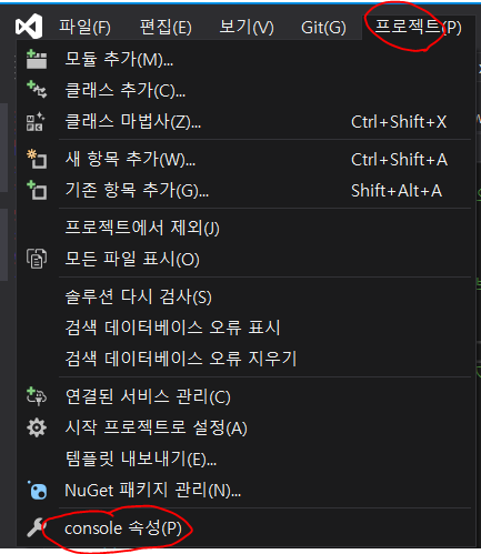 1. 상단 바에서 프로젝트(p) > console 속성에 들어간다.