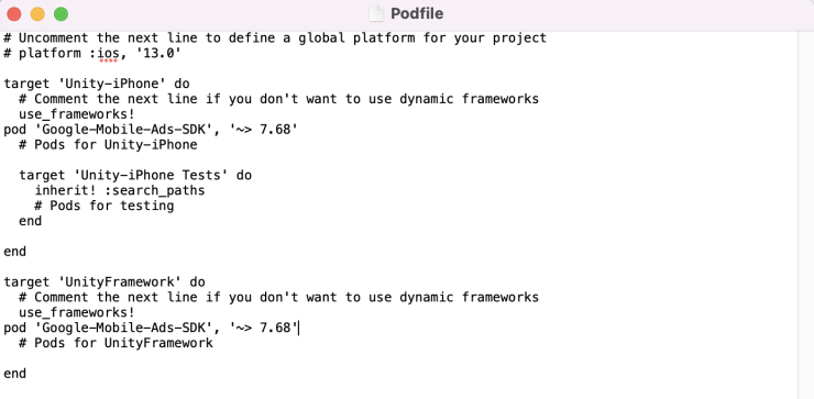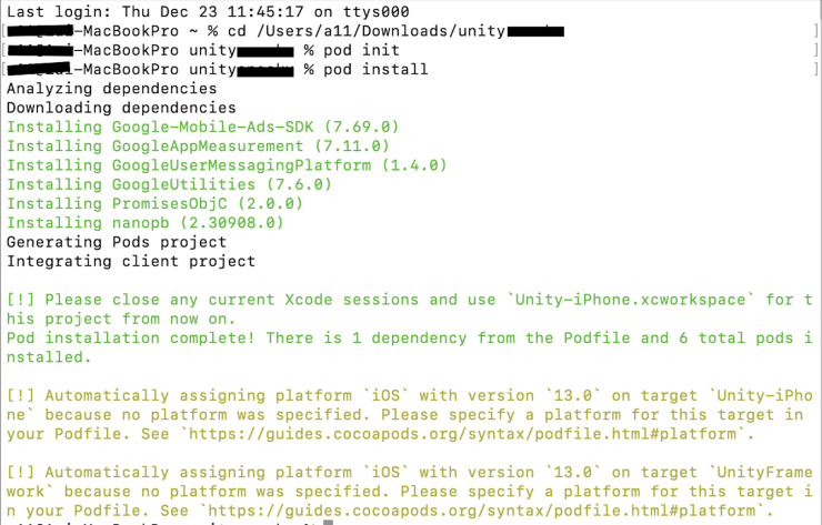 개요: 유니티 빌드 이후 cocoapods로 google adsmob pod 포함 - xcode 업로드