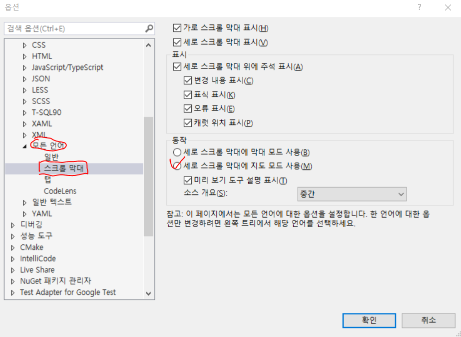 [visual studio] 스크롤 막대 및 지도 모드 설정프로그래밍 공부/기초 지식, visual studio 2022. 10. 6. 02:00728x90